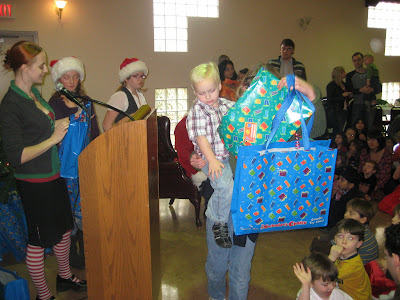 O Papai Noel apareceu depois do almoço e toda criança recebeu um presente.